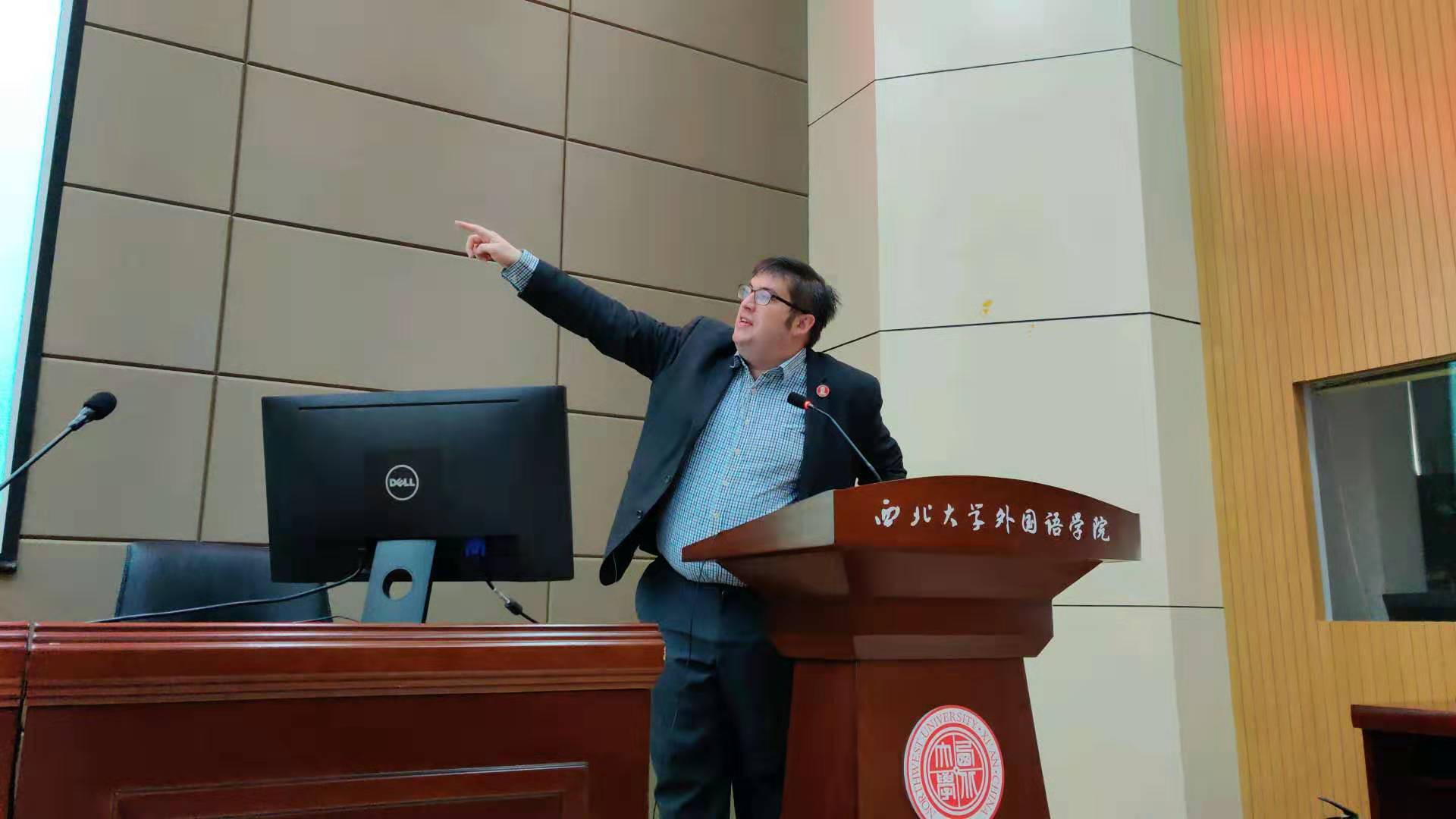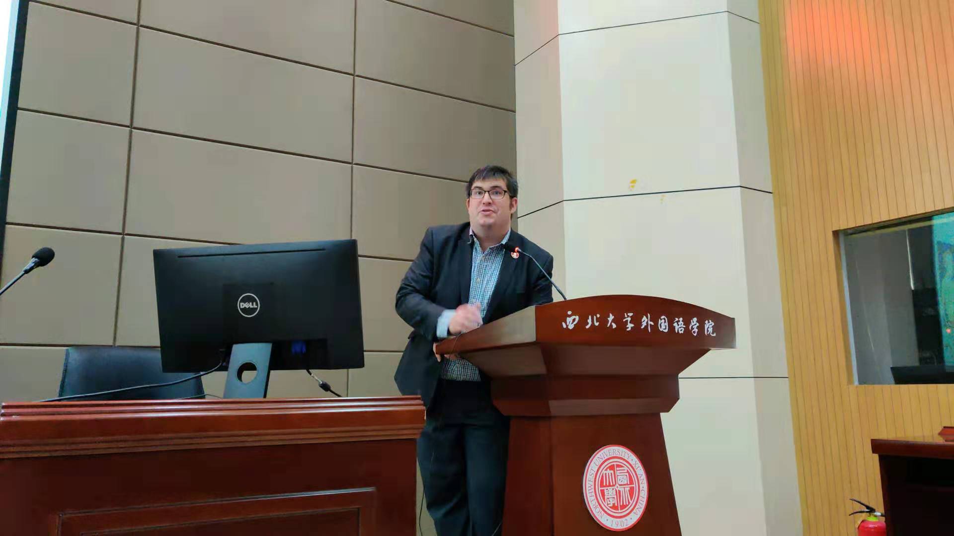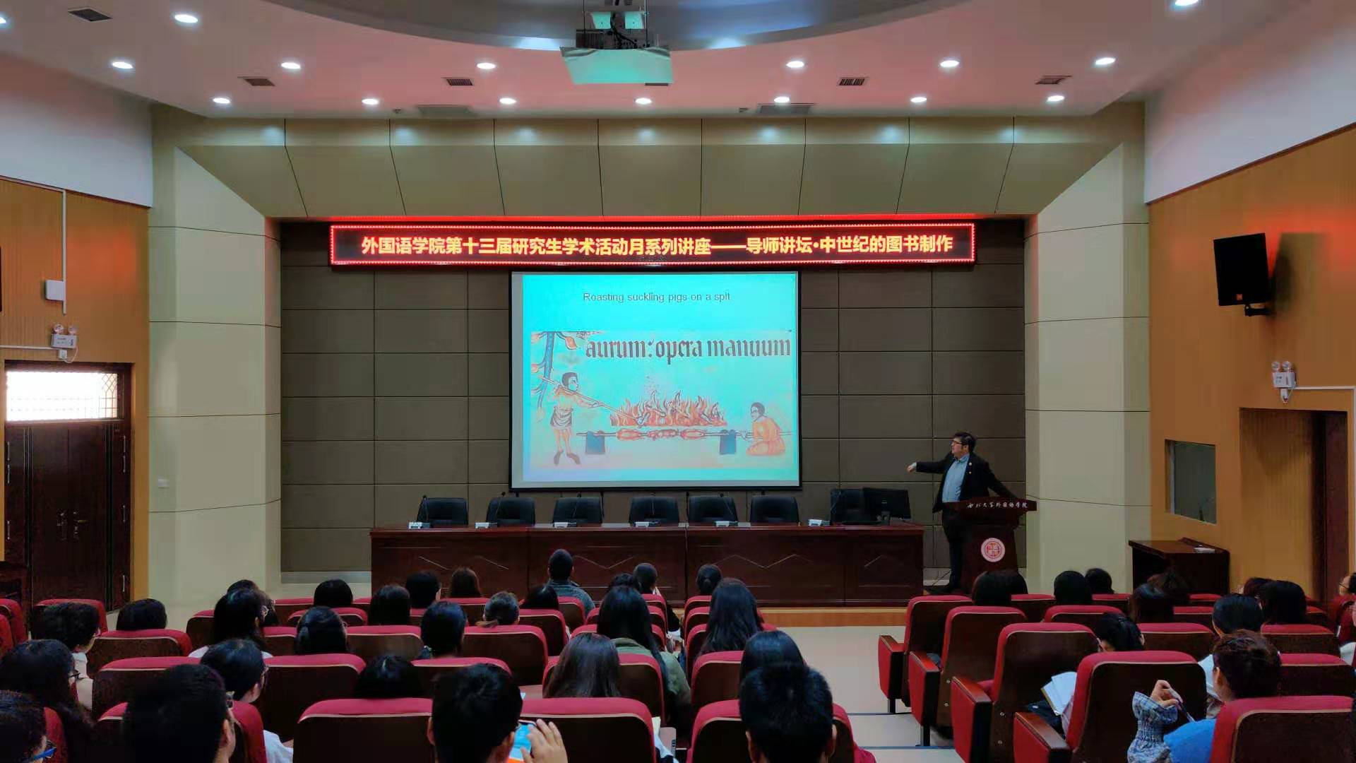 10月23日下午,由研究生院、研究生工作部主办,外国语学院承办的“导师讲坛”第一百三十二讲在长安校区外国语学院第二课堂举行。外国语学院外籍专家罗宾·吉尔班克副教授应邀作了题为“中世纪的图书制作”的专题学术报告。该报告由外国语学院研究生秘书周丹主持,全院百名师生参会。