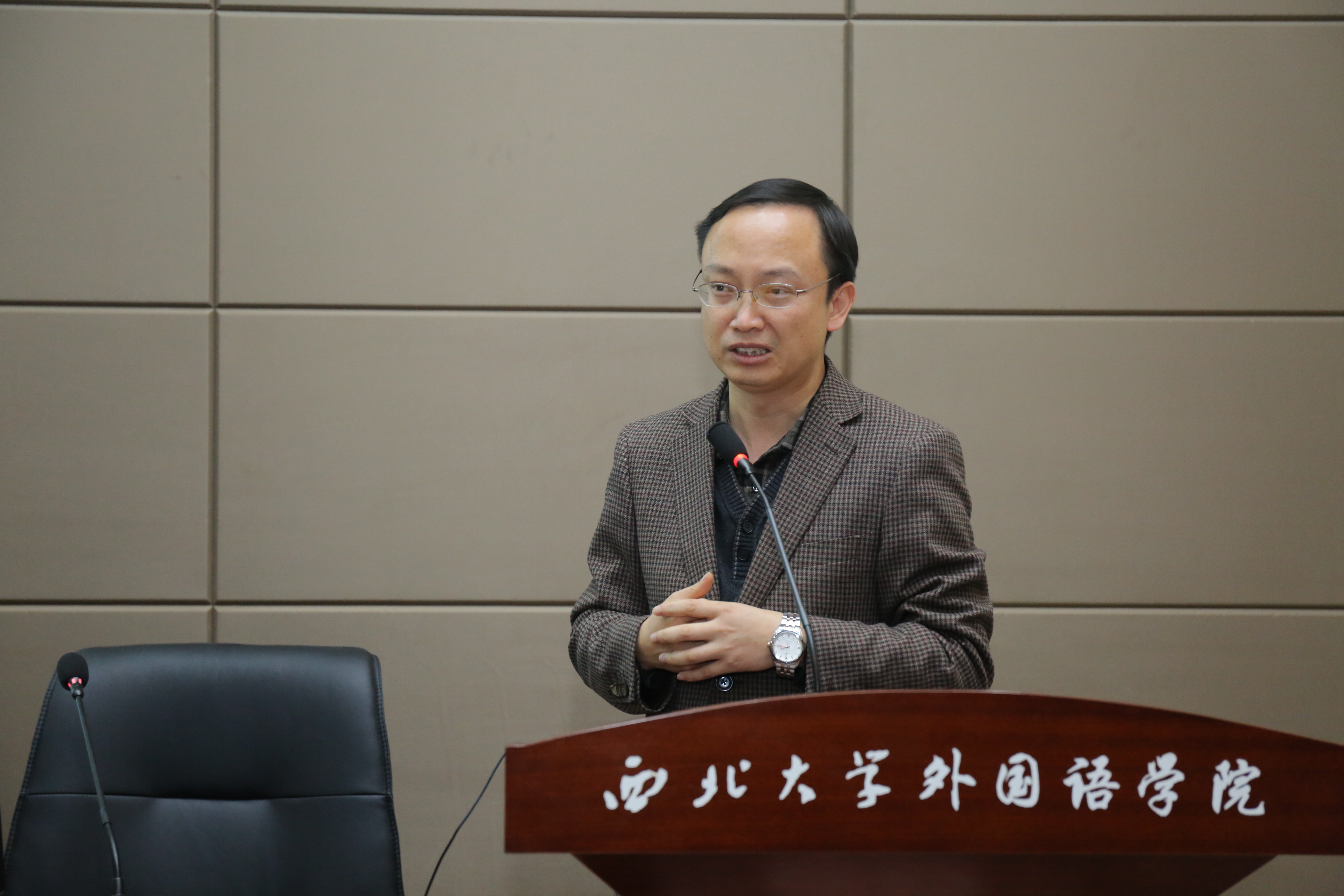 报告由学院科研副院长任海棠教授主持。