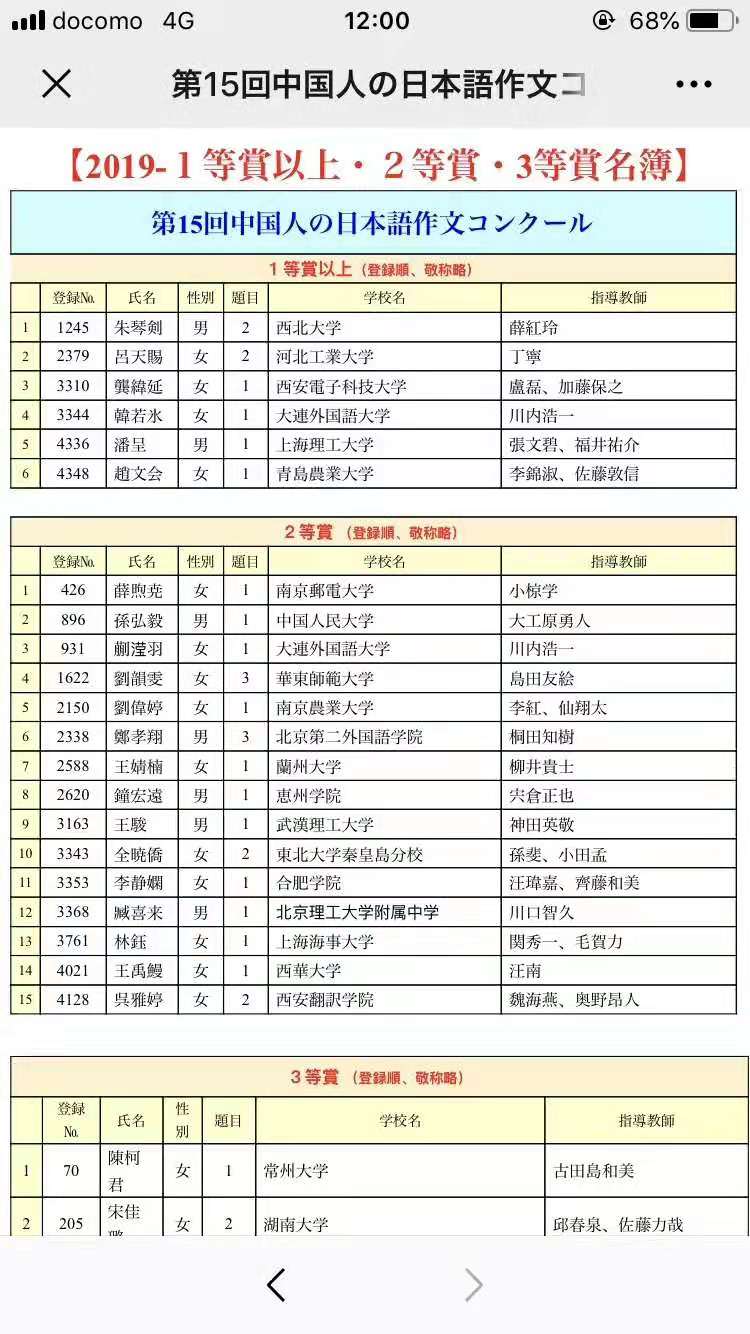 迄今为止,该大赛一等奖以上几乎被北上广和沿海地区的大学所包揽,而且指导教师大多为日本外教。而本次必赢亚州242学生朱琴剑同学入围一等奖以上(前6名),且指导教师是中国教师,说明西北地区日语教育水平也在不断提高,同时也证明本土教师照样能在写作指导上作出成绩。